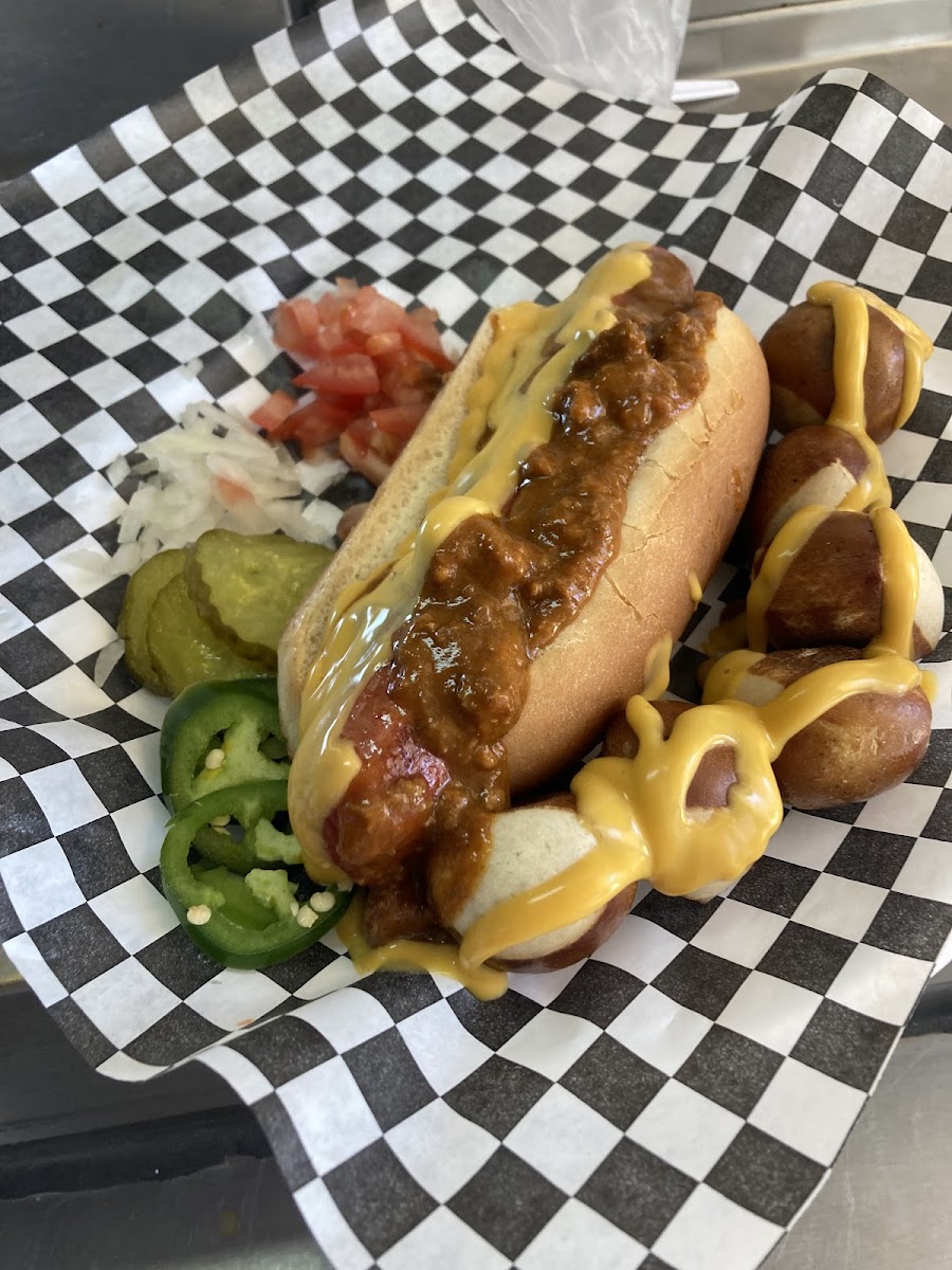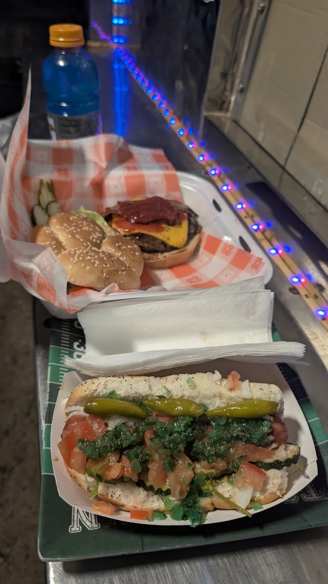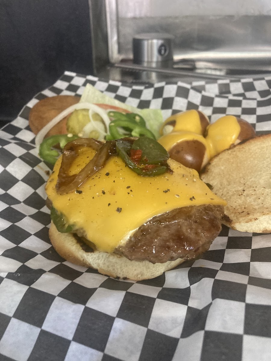 The menu is surprisingly diverse for a casual spot. Alongside the classic hot dogs, you’ll find burgers, chicken sandwiches, and even vegetarian options for those who want something lighter. Their “Build Your Own Dawg” option is a hit you choose your base, toppings, and sauces, making it easy to craft your perfect combination. For those with a sweet tooth, their milkshakes are thick, creamy, and worth the indulgence. Every item feels like it’s been designed for flavor first, not just convenience.